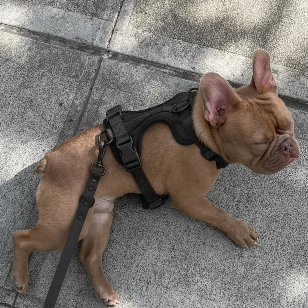 Le mécanisme est doux : aucun choc, aucun blocage, aucune pression au cou. La force est répartie sur le torse, ce qui permet au chien de s’ajuster sans stress pour lui comme pour vous.